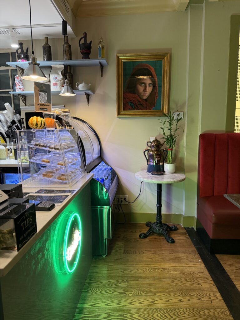 What distinguishes Qaalii’s Cafe from other coffee spots is the intentional way its identity was built. The ownership group includes partners of Ethiopian, Turkish, and Afghan descent. Rather than defaulting to a single cultural aesthetic, they pooled their traditions. Turkish lights hang from the ceiling. A mural showcases imagery from each homeland. The coffee is Ethiopian, sourced from Red House Roasters on Mount Pleasant Avenue in Newark.
